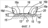 Верхний профиль второго, вспомогательного ребра 16 образован по существу двумя симметричными вогнутостями 16а и 16b, которые продолжаются в радиальном направлении.
