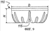 10. Основание бутылки по любому из пп.1-5, 7, 8, отличающееся тем, что высота (Н) основания (10, 110), измеренная между опорной поверхностью (19) и точкой (26) соединения между указанным основанием (10, 110) и цилиндрическим корпусом (25) бутылки (21), частью которой является указанное основание, составляет от 0,33 до 0,4 максимального поперечного диаметра (D) указанного основания (10, 110).