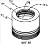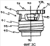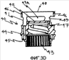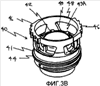 На фиг.3А-3F показан более подробно внутренний храповой элемент 40. Этот храповой элемент 40 имеет цилиндрический корпус 41. Этот цилиндрический корпус 41 открыт на одном своем конце, но закрыт верхней пластиной 42 на другом конце. На внутренней поверхности открытого конца корпуса 41 выполнены храповые зубья 43. Кроме того, на внешней поверхности корпуса 41 выполнена винтовая резьба 44. Между внешней поверхностью, на которой находится резьба 44, и внутренней поверхностью, на которой находятся храповые зубья 43, находится уступ 45. Предназначение этого уступа 45 будет объяснено ниже. На внешней поверхности корпуса 41, на конце, противоположном открытому концу, также выполнены два ряда храповых зубьев 46. И, наконец, на внутренней поверхности корпуса 41 выполнена еще одна винтовая резьба 47, которая располагается аксиально над храповыми зубьями 43.