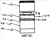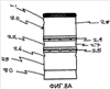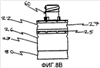 Фиг.8B показывает вид сбоку одного варианта воплощения укупорочного средства ROPP, где верхняя часть вместе с внутренним храповым элементом 40 и внешним храповым элементом 30 удалены, обнажая выливную часть 60. Выливная часть 60 прикреплена к контейнеру 80 с помощью нижней части 23 и средней части 22 ROPP путем обжима на нем. Хотя в данном тексте средством фиксированного прикрепления к укупорочной пробке 10 частей оболочки 21, 22, 23 является обжим, для этой цели могут, разумеется, применяться другие способы, такие как приклеивание или приваривание.