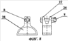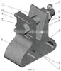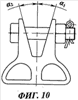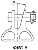 Еще один вариант анкерного кронштейна, находящий практическое применение (фиг.8), когда однолапчатые проушины 26, 27 разворачиваются в вертикальной плоскости на 90°, в результате чего элемент для крепления кронштейна к опоре линии располагается перпендикулярно пазу-полости 28 корпуса.