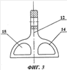 Во многих случаях практической подвески самонесущих изолированных проводов или оптических кабелей связи эффективно применять конструкции анкерных кронштейнов, в которых однолапчатые проушины 5, 6 соединяются перемычкой 16, образуя единый замкнутый контур в форме окружности 17 или овала 18 (фиг.11, 12). Кроме того, корпус кронштейна для увеличения жесткости и упрощения его конструкции может быть выполнен в виде замкнутой части 19 только с одной стороны от продольной оси 20, а на конце незамкнутого основания 21 с другой стороны от продольной оси 20 иметь выступ 22 для ограничения перемещения элемента для крепления кронштейна к опоре линии (фиг.6).