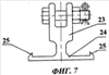 На фиг.7 представлен очень простой конструктивный вариант анкерного кронштейна, в котором профиль корпуса представляет собой перевернутую Т-образную фигуру 23; на концах горизонтальной части 24 такого корпуса выполняются выступы 25 для ограничения перемещения элемента для крепления кронштейна к опоре линии.