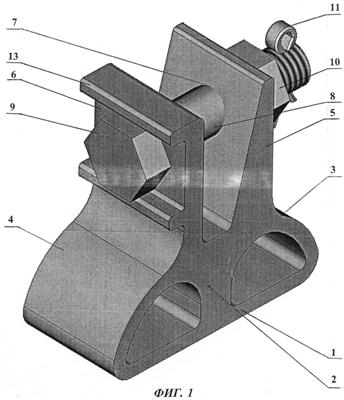 8. Кронштейн по п.1, отличающийся тем, что углы 1 и 2, под которыми внутренние плоскости обеих однолапчатых проушин расположены относительно продольной оси кронштейна, выбирают равными не больше 30° соответственно.