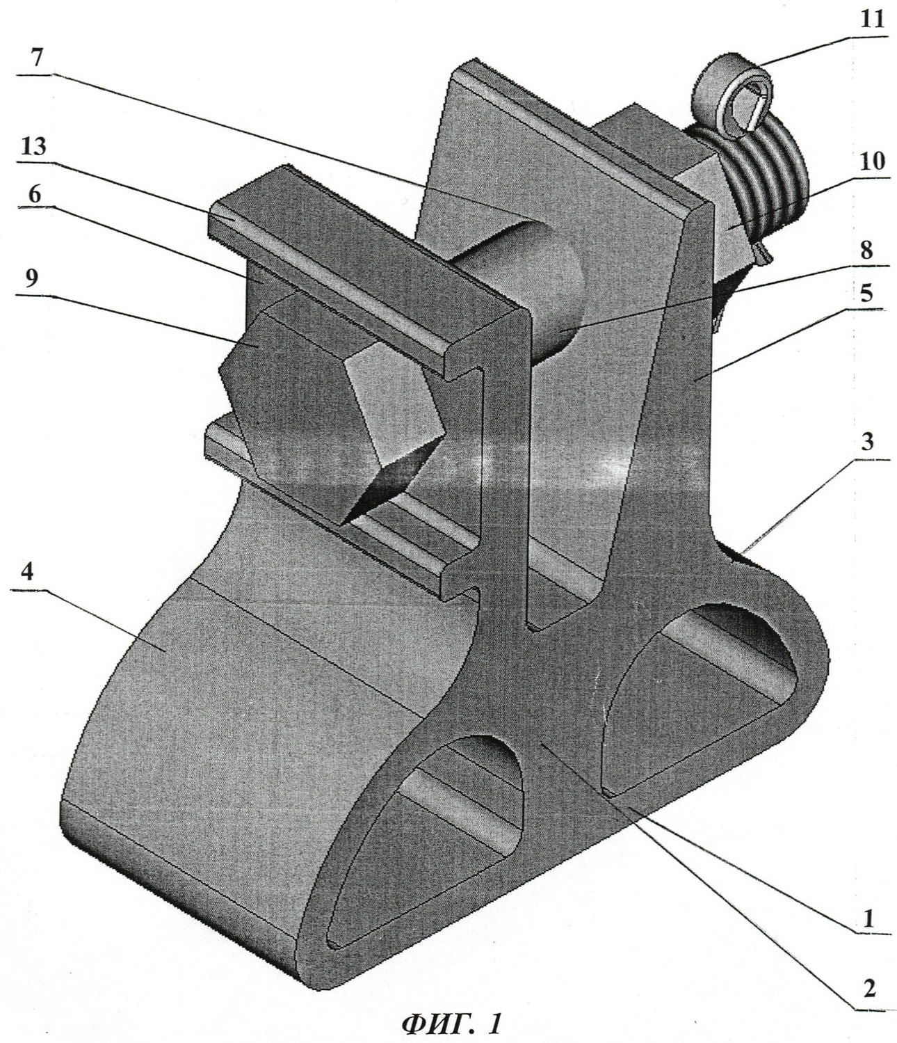 Сущность изобретения поясняется чертежами, где на фиг.1 представлен общий вид анкерного кронштейна, выполненного согласно первому независимому пункту формулы настоящего изобретения; на фиг.2 – то же, что на фиг.1, вариант по 2-му зависимому пункту формулы изобретения; на фиг.3 – то же, что на фиг.1, вариант по 3-му зависимому пункту формулы изобретения; на фиг.4 и 5 схематически представлены варианты анкерного кронштейна с одним пазом-полостью и элементами для крепления кронштейна к опоре, выполненного согласно первому независимому пункту формулы настоящего изобретения; на фиг.6 – то же, что на фиг.1, вариант по 4-му зависимому пункту формулы изобретения; на фиг.7 – то же, что на фиг.1, вариант по 5-му зависимому пункту формулы изобретения; на фиг.8 – то же, что на фиг.1, вариант по 6-му зависимому пункту формулы изобретения; на фиг.9 – то же, что на фиг.1, вариант по 7-му зависимому пункту формулы изобретения; на фиг.10 – то же, что на фиг.1, вариант по 8-му зависимому пункту формулы изобретения; на фиг.11 – то же, что на фиг.1, вариант по 13-му и 14-му зависимым пунктам формулы изобретения; на фиг.12 – то же, что на фиг.1, вариант по 15-му зависимому пункту формулы изобретения; на фиг.13 схематически представлен общий вид анкерного кронштейна, выполненного согласно двадцатому независимому пункту формулы настоящего изобретения; на фиг.14 – то же, что на фиг.13, вариант по 21-му зависимому пункту формулы изобретения; на фиг.15 – то же, что на фиг.13, вариант по 22-му зависимому пункту формулы изобретения; на фиг.16 – то же, что на фиг.13, вариант по 23-му зависимому пункту формулы изобретения.