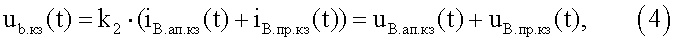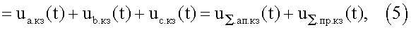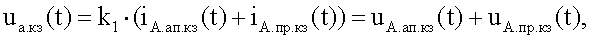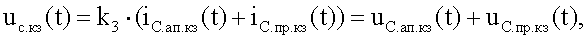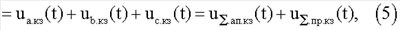 и путем суммирования этих трех напряжений получают входной аналоговый электрический сигнал uвх.кз(t), в общем случае состоящий из суммы двух электрических сигналов, первый из которых является суммарным апериодическим сигналом u .ап.кз(t), а второй является суммарным принужденным сигналом u .пр.кз(t), т.е.