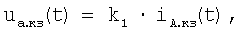 На этой же фигуре приведен график изменения затухающего синусоидального сигнала uвых.кз(t) с частотой доп и появляющегося на выходе идентификатора 7 (фиг.1а) апериодической составляющей, выполненного по известному способу обработки электрического сигнала, причем доп>> A и fдоп>>fB. Время существования электрического сигнала uвых.кз(t) (интервал времени 0 – t1 на фиг.2) связано с продолжительностью протекания переходного процесса в короткозамкнутом контуре, определяемом двухфазным КЗ между фазами А и В и питаемым со стороны источником ЕА (фиг.1а, токи iкз(А)).