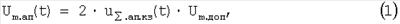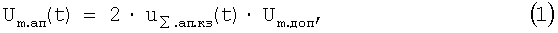 где Um.доп и доп – амплитуда и частота дополнительного гармонического сигнала, используемого в известном изобретении, причем затухающая амплитуда Um.ап(t) содержит в своей структуре выявительный признак о возникновении КЗ на линии электропередачи.