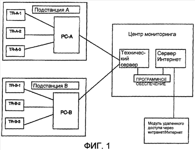 Другая задача изобретения состоит в создании системы и способа централизованного мониторинга и управления режимом работы силовых трансформаторов, расположенных на разных подстанциях, причем эти подстанции географически удалены друг от друга.