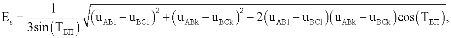 uАВ1, uВС1 – значения линейных напряжений на статоре двигателя, полученные в начале бестоковой паузы в фазе В;
