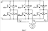 Автономный инвертор содержит три полумоста полностью управляемых ключей V1-V6 и три полумоста неуправляемых обратных вентилей D7-D12. Каждый из полумостов фазы инвертора содержит последовательно соединенные первый и второй ключи, подключенные соответственно к первому и второму выводам источника питания, а средней точкой к соответствующей фазе асинхронного двигателя М.