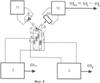 Электрическое поле вызывает деформацию кварцевого стержня. Вдоль длины стержня будет сжатие в одной его половине и растяжение в другой. В результате произойдет изгиб стержня в плоскости XY. Если приложить одновременно переменное напряжение к двум парам граней от автогенераторов 2 и 3, то электрическое поле в каждой точке поперечного сечения кварцевого резонатора 1 будет иметь вид, показанный на фиг.3 (вектора Ех и Ez, результирующий вектор Е). В результате произойдет результирующая деформация КР. Результирующей деформацией будет кручение вокруг оси, пересекающей центры граней ZX (кристаллофизической оси Y).