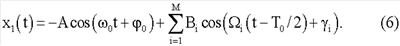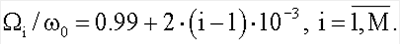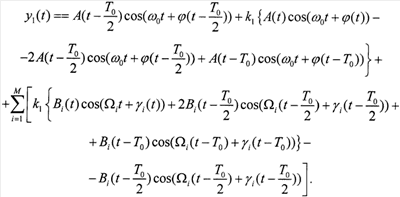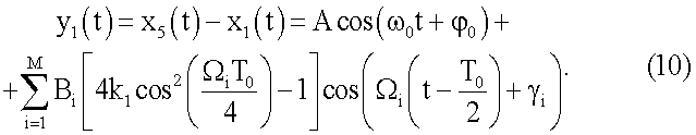 Положим М=5, т.е. количество помеховых составляющих в (2) равно 5 с частотами i, удовлетворяющими условиям: