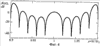 – коэффициент усиления фильтра 6 (см. фиг.1). На фиг.2 изображена амплитудно-частотная характеристика (АЧХ) этого фильтра (в децибелах). Несложно заметить, что эта АЧХ достигает своего минимума только в одной точке на частотной оси, соответствующей частоте помехи 1 (точнее, таких точек, соответствующих минимуму частотного коэффициента передачи, будет две – с частотой 1 и частотой, симметричной относительно несущей частоты). Следовательно, остальные частотные составляющие (на частотах 2– 5 будут компенсированы не полностью).
