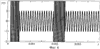 Несложно заметить, что, как и в (10), сигнал на выходе первого звена заявленного устройства состоит из двух слагаемых, первое из которых совпадает с полезным сигналом (3), а второе представляет собой частично скомпенсированный помеховый сигнал. Второе слагаемое в этом выражении будет скомпенсировано при прохождении через все звенья заявленного устройства. Конечно, данный вывод основан на некоторых приближениях, в частности требуется выполнение условий узкополосности (4). Рассмотрим, к чему приводит отклонение от этих условий. В качестве полезного сигнала и помехи возьмем бинарные фазоманипулированные сигналы. На фиг.5 изображена реализация наблюдаемых данных длиной 2 при T0/ =20, где – длительность, соответствующая одному биту передаваемой последовательности. Середина оси абцисс на этом чертеже соответствует «скачку» фазы на . На фиг.6 изображен сигнал на выходе заявленного устройства. Анализ этого чертежа свидетельствует о том, что на выходе заявленного устройства действительно происходит очищение полезного сигнала от помеховых сигналов. Отличия будут наблюдаться только в начале работы всей системы (пока не закончатся переходные процессы) и в моменты времени, соответствующие моментам изменения фазы сигнала и помех. Эти искажения сигнала занимают интервал времени, равный МТ0 (в рассматриваемом случае 5T0), что значительно меньше длительности одного сегмента сигнала , и эти искажения не оказывают влияния на изменение фазы сигнала. Более того, если в соответствующий момент времени «скачка» фазы нет, то и искажения в выходном сигнале заявленного устройства в этот момент времени также отсутствуют.