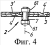 В предпочтительном варианте осуществления изобретения фитинг 2 может состоять из двух одинаковых плоских листовых металлических элементов 1, состоящих каждый из основной круглой части и отходящего от нее по касательной хвостовика, закрепленного на конце соответствующей детали 11 рамы. Указанные листовые металлические элементы 1,1′ прилегают друг к другу своими плоскими поверхностями и соединены оба с осью 6 поворота, на каждом конце которой имеется головка 61. Пружина 7 на каждой стороне фитинга находится в контакте с элементами 1, 1′ и удерживает их прижатыми друг к другу. Чтобы удержать концы деталей 11 рамы 10 в соосном положении друг против друга, как показано на фиг.1, и не допустить опускания вниз точек их соединения, каждый элемент 1, 1′ имеет отверстие 3, 3′ и зенкованное углубление 4, 4′, соединяющиеся в окружном направлении отверстия. Зенкованные углубления 4, 4′ элементов 1, 1′ примыкают друг к другу на соседних краях 31, 31′ отверстий 3, 3′. Так как зенкованные углубления 4, 4′ скруглены у противоположных краев отверстий, они могут выскальзывать из соответствующих отверстий, когда фитинги 2 складываются, поднимаясь вверх относительно положения, показанного на фиг.1. При этом элементы 1′ отходят друг от друга, перемещаясь по оси 6 с преодолением силы пружинных элементов 7. На фиг.3 показаны два запорных устройства, образованные на диаметрально противоположных участках двух элементов 1′.