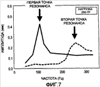 В вышеупомянутом первом варианте осуществления в соответствующих режимах работы используется единственное заданное значение. Однако, как показано на фиг.7, при изменении нагрузки, действующей на чистящую головку, меняются и вибрационные характеристики щетки, а также положение точки резонанса. На фиг.7 представлены вибрационные характеристики для нагрузки в 250 г, при этом первая точка резонанса оказывается в районе 110 Гц, а вторая точка резонанса – в районе 250 Гц. По сравнению с первым случаем при нагрузке в 100 г (фиг.5) видно, что значения частоты в обеих резонансных точках увеличились. Следовательно, во втором варианте осуществления отслеживается нагрузка, действующая на чистящую головку, и число оборотов двигателя регулируется в соответствии с величиной этой нагрузки.