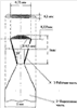 Рабочая часть трабекулотома (позиция 1) выполнена в виде плоского шпателя, имеющего боковые обоюдоострые режущие кромки (на чертеже выделены жирной линией), и выполнена симметрично расширяющейся в сторону дистального конца. Дистальный конец трабекулотома выполнен тупым в форме дуги радиусом 0,5 мм со скругленными гранями, а боковые режущие кромки не доходят до вершины дистального конца вдоль продольной оси трабекулотома 0,125 мм. И как частный вариант – боковые режущие кромки образуют с продольной осью трабекулотома угол 20°, а толщина рабочей части трабекулотома составляет 0,1 мм.