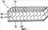 В другом варианте, как это показано на фиг.1, поверхностный слой 12 может состоять из текстильного слоя, кашированного покрывающим слоем 20. Текстильный слой может иметь при этом относительно большой размер петель и служит, по существу, в качестве опорного слоя для покрывающего слоя 20. В этом варианте возникает большая свобода в отношении выполнения распорного материала и, в частности, также в отношении текстильного слоя поверхностного слоя 12, служащего в качестве опорного слоя. Эта свобода касается как размера петель, так и выбора материала и толщины нитей для текстильного слоя. Покрывающий слой 20 обладает биосовместимыми свойствами и имеет требуемую структуру. Для покрывающего слоя 20 может применяться, например, тонкая пленка, состоящая из полимерного пеноматериала с открытыми порами, например из поливинилового спирта. За счет выбора полимера можно достичь оптимальной биосовместимости. Толщина покрывающего слоя 20 и размер пор пеноматериала могут быть оптимизированы так, что проникновение жидкости будет иметь минимальное препятствие, а врастание раневой ткани будет надежно исключено. Вместо пеноматериала из полимера для покрывающего слоя 20 можно использовать также текстильный материал, имеющий подходящую структуру.