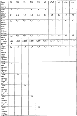 | Диоксид кремния из примера 5, % |