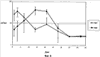Фиг.2 показывает суммарное процентное высвобождение дексаметазона in vivo в стекловидном теле глаза кролика в течение 42-дневного периода после имплантации в заднюю область глаза спрессованных и экструдированных биодеградируемых имплантатов, содержащих 350 мкг дексаметазона и 700 мкг дексаметазона.