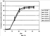 На Фиг.10 приведено сравнение суммарного процентного высвобождения дексаметазона in vitro в физиологическом растворе при температуре 37°С для шести партий спрессованных имплантатов, содержащих около 60 мас.% дексаметазона, 30 мас.% СМГК с гидрофильными концами и 10 мас.% СМГК с гидрофобными концами.