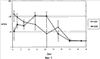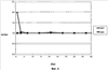 Фиг.7 показывает концентрацию дексаметазона в плазме (из образца крови кролика) in vivo в течение 42-дневного периода после имплантации в заднюю область глаза кролика спрессованных и экструдированных биодеградируемых имплантатов, содержащих 700 мкг дексаметазона.