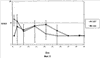 Фиг.3 показывает концентрацию дексаметазона в водянистой жидкости глаза кролика in vivo в течение 42-дневного периода после имплантации в заднюю область глаза кролика спрессованных и экструдированных биодеградируемых имплантатов, содержащих 350 мкг дексаметазона.