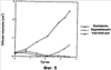 На фиг.9 показан блокирующий эффект на опухолевый рост у животных, обработанных и необработанных композицией по настоящему изобретению.