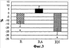 На фиг.3 представлены данные содержания десмина через 24 часа после тренировки. Нулевой уровень – содержание десмина в контроле, R-бег, RA-бег+L-аргинин, RN-бег+L-NAME;