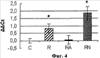 На фиг.4 представлены данные – содержание мРНК nNOS в m.soleus, С-контроль, R-бег, РА-бег-L-аргинин, RN-бег+L-NAME).