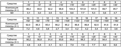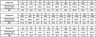 Описанные выше данные о композиции глюкозы приведены в нижеследующей таблице:
