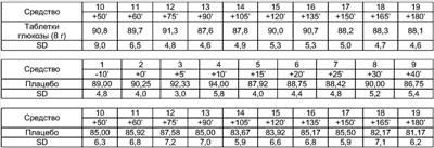 Пример 8: Сравнение таблеток глюкозы, 8 г, с композицией глюкозы, 8 г, и с плацебо