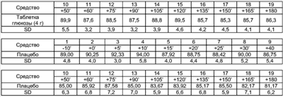 Сравнение между таблетками глюкозы, композицией глюкозы, 4 г, и плацебо, введенными здоровым добровольцам