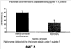 Фиг.5 (различия в латентности спасения между тренировочным днем 1 (1 месяц лечения) и днем 5 (2 месяца лечения); данные представляют собой среднее ± стандартная ошибка среднего. ** = P < 0,01) демонстрирует различия между самым первым днем, когда неподготовленных крыс поместили в ВЛМ, и повторной тренировкой после 2 месяцев лечения. Животные, леченные смесью согласно изобретению, улучшили показатели почти на 25 секунд или почти на 50% по сравнению с первым тренировочным днем, в то время как контрольные животные, леченные физиологическим раствором, показали улучшение примерно на 12 секунд или менее чем на 25%. Сравнение различий в латентности спасения между первым тренировочным днем и повторной тренировкой в первый день обучения после окончания периода лечения (3 мес) не выявило никаких значимых различий между группами. Тем менее существовала тенденция в пользу лечения смесью согласно изобретению, однако данные ясно показывали, что повтор тренировок в конце концов приводил к успеху во всех леченных группах. Авторам пришлось предположить, что все эксперименты были проведены на старых, но в остальном здоровых животных без явных неврологических нарушений. Поэтому ожидалось, что продолжение тренировок будет постоянно улучшать когнитивные способности в обеих леченных группах.