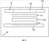 На фиг.8 показан схематический чертеж разных слоев поглощающего изделия по изобретению. Верхний лист имеет зону впуска жидкости, где жидкость из пользователя принимается и перемещается в изделие. Зона впуска жидкости представляет собой часть промежуточной зоны (111), поскольку она будет мокрой при приеме жидкости и более сухой, когда жидкость будет поглощена поглощающей структурой. Наружные части верхнего листа не будут принимать жидкость и, таким образом, будут представлять собой часть сухой зоны (112). Возможно, принимающий слой или вата расположен (-а) под верхним листом. Данный слой обычно будет представлять собой часть промежуточной зоны (111), поскольку он обычно будет не удерживать жидкость, а обеспечивать распределение ее в поглощающую сердцевину. В тех изделиях, в которых данный слой обладает свойствами удерживания жидкости и/или предназначен для удерживания жидкости, он может представлять собой часть мокрой зоны. Поглощающая структура, расположенная под верхним листом и под возможным принимающим слоем/слоем ваты, будет служить для удерживания жидкости, и, следовательно, обычно вся поглощающая структура будет представлять собой часть мокрой зоны (110). Если части поглощающей структуры имеют другие функции, такие как функции стабилизации, данные части могут представлять собой части промежуточной зоны (см., например, фиг.4). Часть заднего листа, примыкающая к поглощающей структуре, обычно представляет собой часть промежуточной зоны. Другие части заднего листа обычно будут представлять собой части сухой зоны.