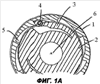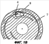 Радиальное решение показано на фиг.1. На фиг.1А показана вращаемая внутренняя часть 2, смещаемая относительно неподвижной наружной части 1. Смещающее усилие обеспечивается пружиной кручения (не показана) в направлении против часовой стрелки. Внутренняя часть 2, поворачиваемая вокруг центральной оси 6, имеет одну или более гибких собачек 3, предназначенных для сцепления с закраинами 5 на неподвижной наружной части 1. На фиг.1B представлен механизм по фиг.1А с вращаемым диском 7 (заштрихованная зона), размещенным сверху внутренней части 2 и наружной части 1. Диск 7 имеет отверстие 8. Края, определяющие отверстие 8, образуют кулачковые пазы увеличения и уменьшения дозы. Захватывающая шпонка 4, прикрепленная или объединенная с гибкой собачкой 3, действует как элемент, ведомый кулачком, когда диск 7 вращается относительно наружной части 1.