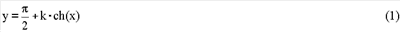 Здесь у и х (см. фиг.1) – координаты в плоскости сечения электрода (у вдоль плоскости и х перпендикулярно ей). Параметр «k» определяет геометрические характеристики полюса, создающего однородное поле. При уменьшении параметра k полюс становится более широким, а с увеличением k профиль становится более узким. На графике фиг.2 представлена зависимость значения параметра k от отношения ширины полюсов (d) к расстоянию между ними (h), при заданной максимальной неоднородности m поля на краях полюсов, равной 5% (кривая 1) и 10% (кривая 2).