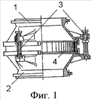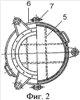 Сухой огнепреградитель (фиг.1-2) состоит из корпуса, выполненного из основания 2 и крышки 1, соединенных между собой посредством, по крайней мере, трех крепежных элементов 3. Причем крышка с основанием выполнены в виде опорных фланцев, соединенных с усеченными конусами, расширяющимися к месту их соединения. Между основанием 2 и крышкой 1 находится огнепреграждающий элемент кассетного типа – кассета 4, которая расположена на фиксирующей решетке 5, выполненной в виде взаимно перпендикулярных стержней, расположенных в верхней части основания 2 параллельно опорным фланцам основания 2 и крышки 1.