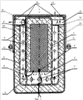 Над крышкой 12 расположен ограничитель 15, закрепленный на металлическом кожухе 11, а последний выполнен с защитной металлической сеткой 16, размещенной в его верхней части под выпускными отверстиями 14 кожуха 11 и/или металлической крышки 12.