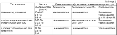 Результаты типичных испытаний для двух классов носителей обобщены в таблице 2. Отметим, что альфа-оксид алюминия в качестве носителя катализатора может быть получен из гамма-оксида алюминия в результате высокотемпературной обработки в диапазоне температур 1000-1300°С.