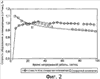 На фиг.2 приведен дополнительный пример сопоставления катализатора 18-5А, промотированного 5 мас.% Ni, со стандартным катализатором 10-14А. И в этом случае продемонстрировано, что добавка никеля в кобальт/рениевый пропитывающий раствор, очевидно, приводит к повышенной стабильности катализатора. Наблюдаемые колебания на кривых в области значений ВНР 20-30 часов вызваны регулированием объемной скорости газового потока для того, чтобы согласовать значения степени превращения.