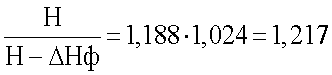 f=n1n2(1,05-0,0005t°)=1·0,8(1,05-0,0005·1100)=0,4