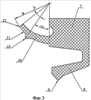 Таким образом, предлагаемое уплотнительное устройство опоры прокатного валка, содержащее подшипниковый узел, насадку, расположенные на шейке валка, крышку, закрывающую подшипник с гнездом для установки уплотнительной манжеты, включающей корпус, радиальную и торцовую губки с рабочими кромками, взаимодействующими с соответствующими поверхностями насадки, при этом торцовая губка выполнена криволинейной формы, на выпуклой стороне которой, обращенной в сторону радиальной губки, размещена дополнительная рабочая кромка, отстоящая от края рабочей кромки торцовой губки на расстоянии, равном 1/3 длины торцовой губки, позволяет сохранить уплотняющие свойства манжеты при изменении положения трущихся поверхностей, увеличить долговечность уплотнительного устройства, повысить его эффективность за счет обеспечения гарантированного взаимодействия рабочих кромок манжеты с поверхностями уплотняющего устройства.