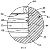 В процессе операций врезного фрезерования, в которых фреза 52 не врезается полностью в заготовку 64, например, при обработке вдоль кромки или вдоль стенок предварительно выполненного гнезда или выемки заготовки 64, силы резания, действующие на фрезу 52, являются несбалансированными, в результате чего фреза 52 подвергается воздействию радиальных сил, направленных от заготовки 64. Вследствие этих радиальных сил хвостовик будет упруго деформироваться и изгибаться от заготовки 64, посредством чего образуется наклонная стенка 66 заготовки 64 при смещении фрезы в осевом направлении вниз. Чем глубже врезание, тем больше изгиб хвостовика, следовательно, наклон заготовки 64 является наибольшим на дне ее обработанной части, где ограничивается ход вниз фрезы 52. Идеально обработанная врезанием часть заготовки 64 должна иметь вертикальную поверхность. Материал наклонной стенки 66 является избыточным материалом, который выступает за требуемую вертикальную поверхность. Режущая пластина 10 по настоящему изобретению имеет возможность удаления, по крайней мере, частично избыточного материала.