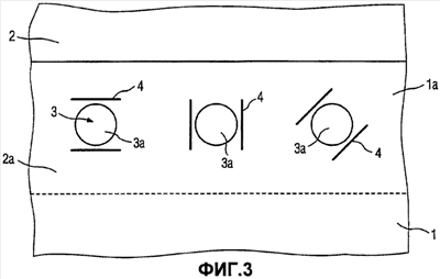 На фиг.2 и 3 показаны другие формы сварных швов. Согласно фиг.2 сварные швы 4 лазерной сварки выполнены также концентрически по отношению к соответствующей заклепке 3а, при этом швы выполнены прерывистыми и круглыми, причем в данном варианте также показана различающаяся толщина шва.