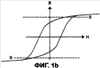 Фиг.1b схематически показывает петлю гистерезиса, при этом приложенное магнитное поле выше, чем уровень магнитного насыщения намагничивающихся частиц,