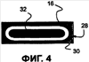Во время сваривания сварочное зажимное приспособление 14 действует совместно с контрпластиной 16 (см. Фиг.2). В этом примере контрпластина 14 является электропроводящей, но пассивной, т.е. не соединенной с энергопитанием. Один вариант осуществления контрпластины 16 будет описан со ссылкой на Фиг.2 и Фиг.4. Контрпластина 16 имеет соответствующую рабочую поверхность 28, выполненную так, чтобы во время сварки быть обращенной к рабочей поверхности 22 сварочного зажимного приспособления 14 (ср. Фиг.3b). Далее, указанная контрпластина 16 выполнена из изолятора 30, причем этот изолятор 30 снабжен проводником 32. Указанный проводник 32 выполнен из электропроводящего материала, т.е. материала с низким удельным сопротивлением, предпочтительно из меди. Он заделан в рабочую поверхность 28 изолятора 30 таким образом, что проводник 32 может быть в контакте с многослойным упаковочным материалом. Альтернативно, проводник 32 может быть покрыт, например, слоем резины, по меньшей мере на рабочей поверхности 22, чтобы защитить многослойный упаковочный материал от прямого контакта с проводником. Далее, проводник 32 имеет форму замкнутой петли. Вся петля может быть в контакте с многослойным упаковочным материалом, т.е. плоскость петли по существу параллельна плоскости многослойного упаковочного материала. Далее, петля вытянута и проходит вдоль длины контрпластины. Изолятор 30 контрпластины 16 может быть похож на изолятор 20 сварочного зажимного приспособления 14. Он выполнен из изоляционного, непроводящего материала с или без свойств магнитной проницаемости. Предпочтительно могут использоваться пластмассы или керамика. В изолятор 30 может быть помещен материал с магнитной проницаемостью. Изолятор или снабжен ферритным порошком (добавленным при формовании пластмассового или керамического изолятора), или используются вкладыши (не показано) из материала, обладающего проницаемостью. Вставной материал может иметь значение проницаемости в диапазоне µ=10-2500. Предпочтительно, могут использоваться, например, вкладыши Ferrotron .