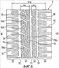Многочисленные прорези 16, каждая из которых проходит в направлении по ширине шины, образованы в каждом из блоков, включенных в секции 21-24 контакта. Форма этих прорезей 16 не является особо лимитированной, и таким образом возможно применять прорези, имеющие зигзагообразную или прямолинейную форму в виде сверху, или прорези, имеющие трехмерную форму.