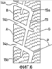Как показано на фиг.5, в секции 21 контакта образованы повторяющиеся наклонные канавки 15, каждая из которых соединяется с тремя из канавок 14 грунтозацепа, будучи в то же время наклоненными к направлению по окружности шины. Один конец 15а каждой наклонной канавки 15 открыт в одну из канавок 14 грунтозацепа, тогда как другой ее конец 15b заканчивается внутри блока. В секции 21 контакта из числа трех канавок 14 грунтозацепа, с которыми сообщается каждая наклонная канавка 15, в то время как канавки 14а грунтозацепа, расположенные на обеих краевых сторонах, сообщаются с главной канавкой 11, канавка 14b грунтозацепа, расположенная в середине, не сообщается с главной канавкой 11. При такой конфигурации три типа блоков, ограниченных набором из трех канавок 14а, 14b грунтозацепа и одной из наклонных канавок 15 и имеющих разную форму, размещены как повторяющееся звено. Дополнительно блок G, расположенный в более удаленной от центра транспортного средства области секции 21 контакта, является относительно более крупным по сравнению с блоком А, расположенным в области секции 21 контакта, более близкой к центру транспортного средства и более близкой к другому концу наклонной канавки 15, а также блоком В, расположенным в области 21 секции, более близкой к центру транспортного средства и более близкой к одному концу наклонной канавки 15. Длина блока G в направлении по окружности шины является приблизительно такой же, как общая длина набора из блоков А и В в направлении по окружности шины.